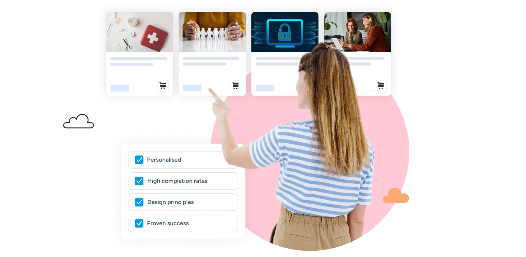 Daarom zijn er SkillsTown Blueprints: een slimme mix van maatwerk en bewezen leeroplossingen. Modules zoals onboarding en security awareness zijn getest door duizenden gebruikers en worden afgestemd op jouw organisatie: herkenbaar, effectief en tot wel 70% goedkoper dan traditioneel maatwerk.