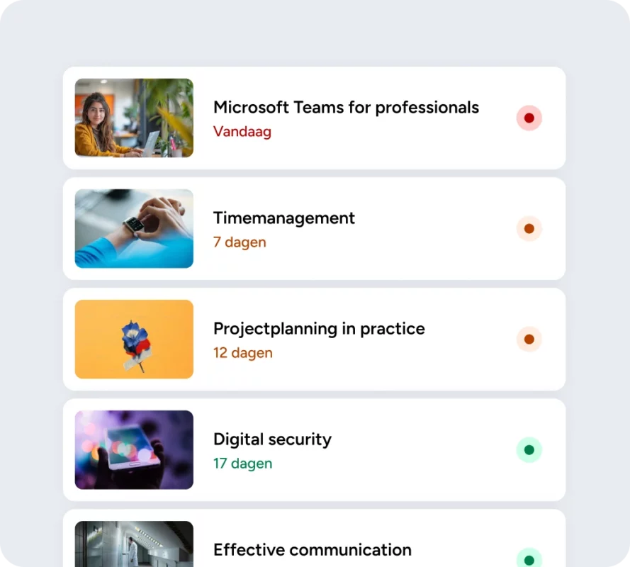 Bied je medewerkers eenvoudig toegang tot verplichte compliance-trainingen in een overzichtelijk platform. Inclusief certificering en automatische leerpaden voor een gestructureerde aanpak.