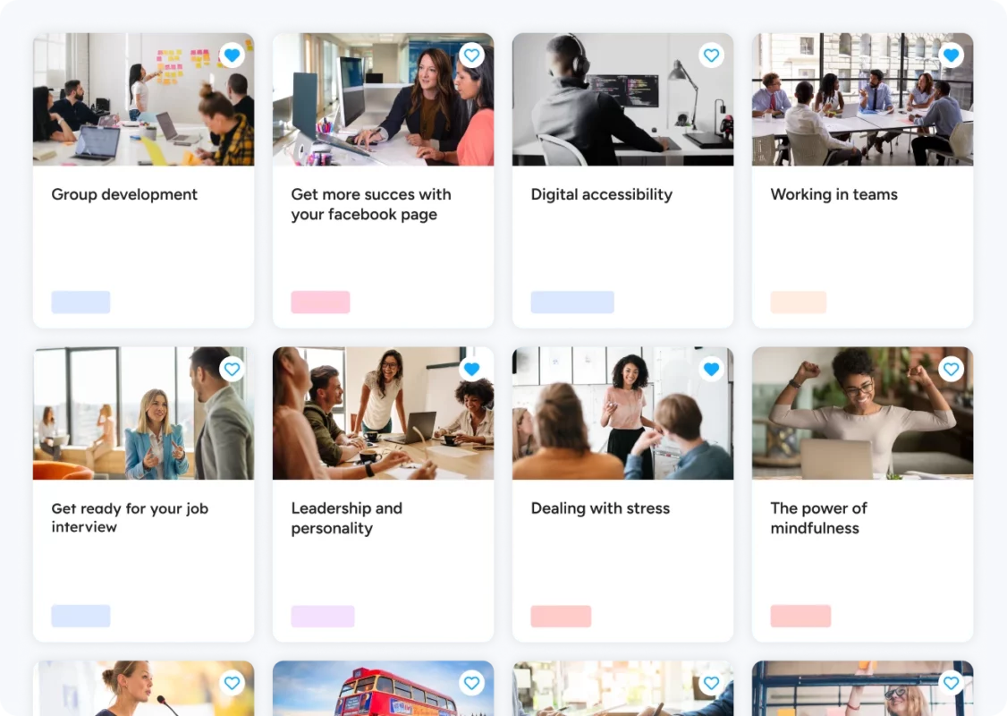 Une vaste bibliothèque d'offres d'apprentissage dans différents formats d'apprentissage.