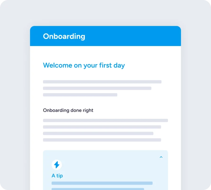 Donnez à vos nouveaux employés l'accès à un environnement d'onboarding personnel dès le premier jour. Pensez à l'initiation à la culture, à la formation pratique et aux lignes d'apprentissage qui correspondent à leur rôle.