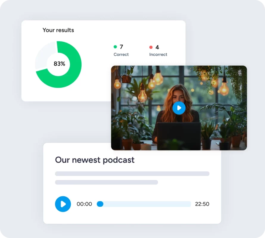 We bouwen leeroplossingen die spreken. Jullie praktijkvoorbeelden, tone of voice en huisstijl worden vertaald naar interactieve e-learnings, video’s, animaties of podcasts die herkenbaar zijn voor de medewerker en aansluiten op de werkvloer.