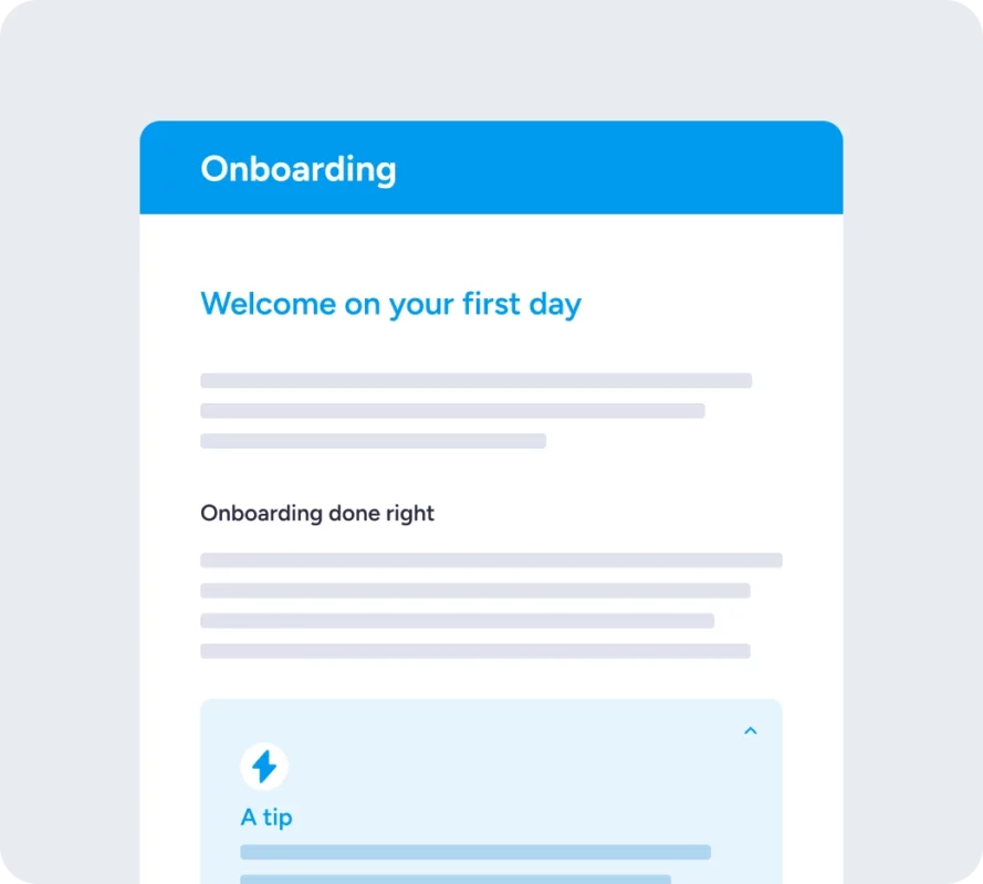 Geef nieuwe medewerkers vanaf dag één een vliegende start met een gestructureerd en interactief onboardingtraject. Inspire helpt je om informatie, processen en cultuur op een aantrekkelijke manier over te brengen, waardoor nieuwe collega’s sneller ingewerkt en betrokken zijn.