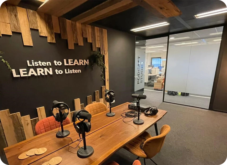 Wanneer je een podcast komt opnemen in onze podcast studio, ondersteunen onze experts je gedurende het hele traject.